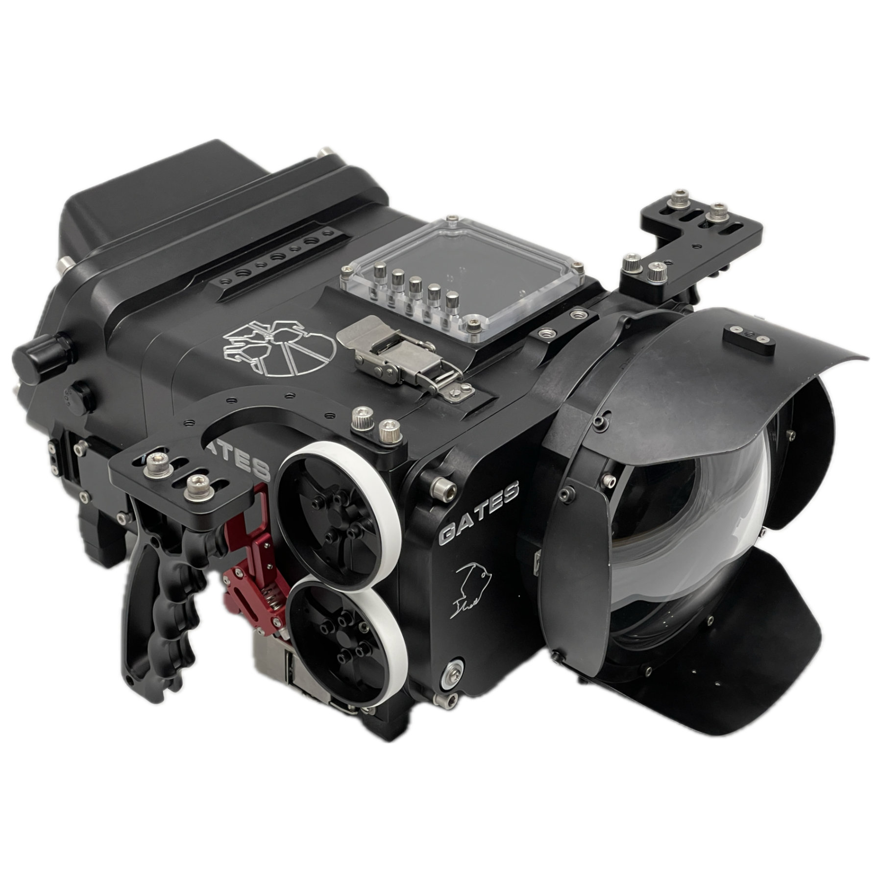 Compact and travel-ready, DK-X is a performance-to-size workhorse, optimized for diver operation. DK-X Housing includes mechanical lens control, full camera menu access, and Gates Command Control (GCC) module which = fast access authority at your fingertips. GCC is flexible, too, with a long list of user-changeable functions: iris, ISO, shutter, focus / exposure tools, and more. Further, GCC is update-able as KOMODO-X camera firmware evolves.