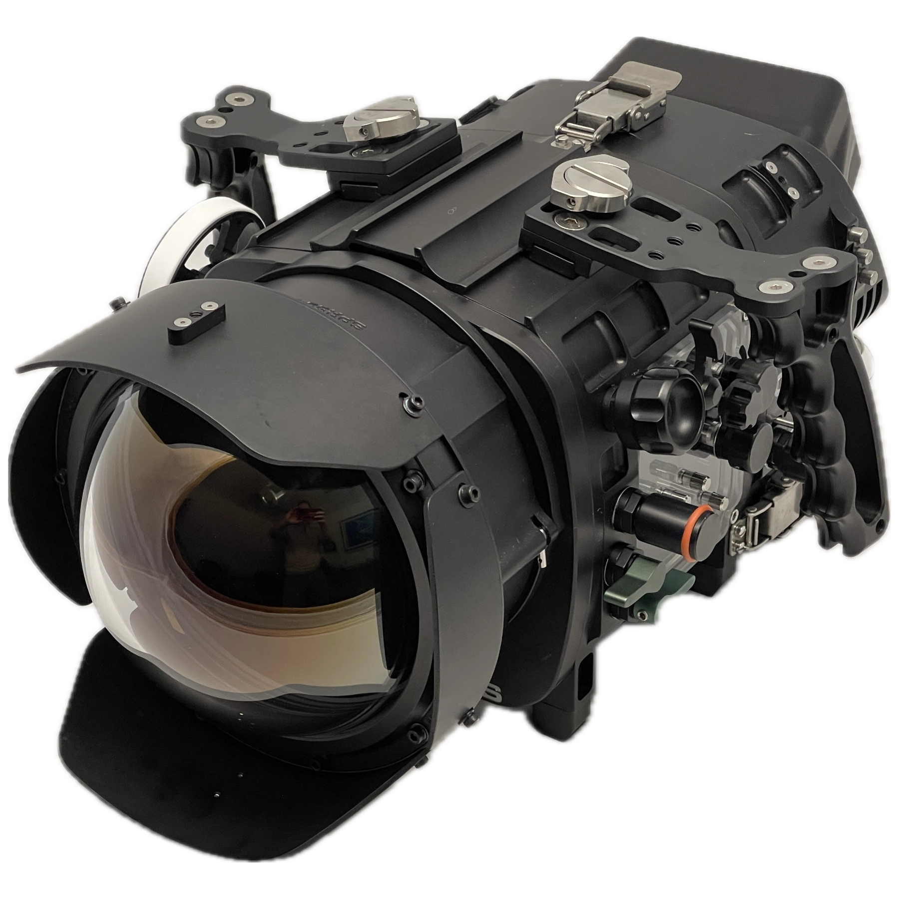 The SP80-10 is a 10in / 254mm spherical dome port that, like it's smaller SP80-8 sibling preserves field of view (FOV) underwater for wide to fisheye imaging. The SP80-10 however, exhibits superior compatibility with rectilinear lenses, mitigating the soft corners classically found with dome ports in general. This particularly beneficial with certain cinema PL mount glass like Arri Master Primes and Ultra Primes.